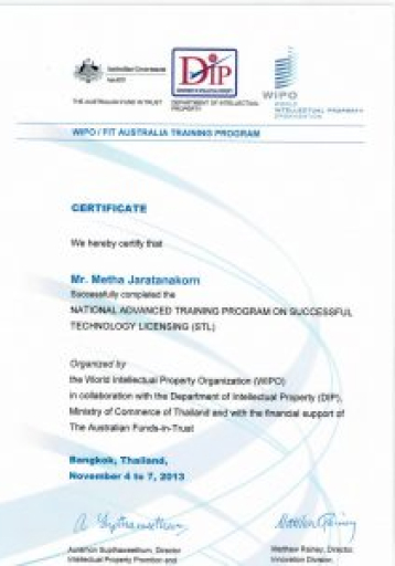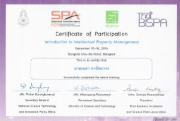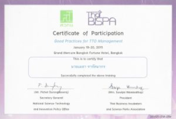 – The National Science and Technology Development Agency (NSTDA): Feasibility study of cosmetic; technical analysis, market survey & analysis, IP commercialization, business plan & strategy, investment evaluation, 2013 CPVA